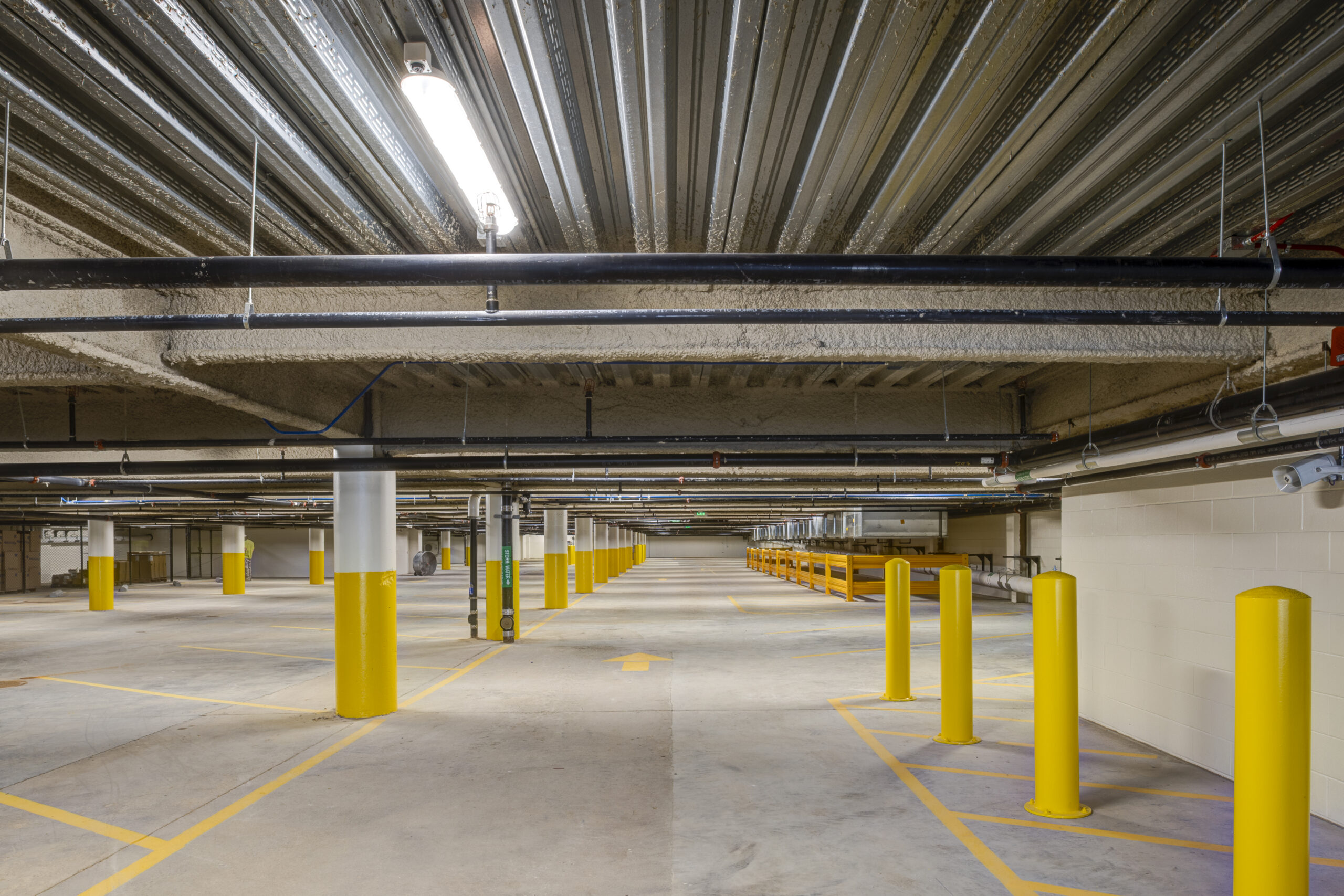The original steel column grid was built “out-of-plumb”, which made it difficult to install the sensitive metal panel system, as the grid had a 500 pounds-per-square-foot tolerance while the equipment intended to install the steel was 5,000 pounds-per-square-foot. Furthermore, the original office building was constructed a mere 8-inches above the water table, so the existing steel columns were largely corroded and required extensive repairs.
