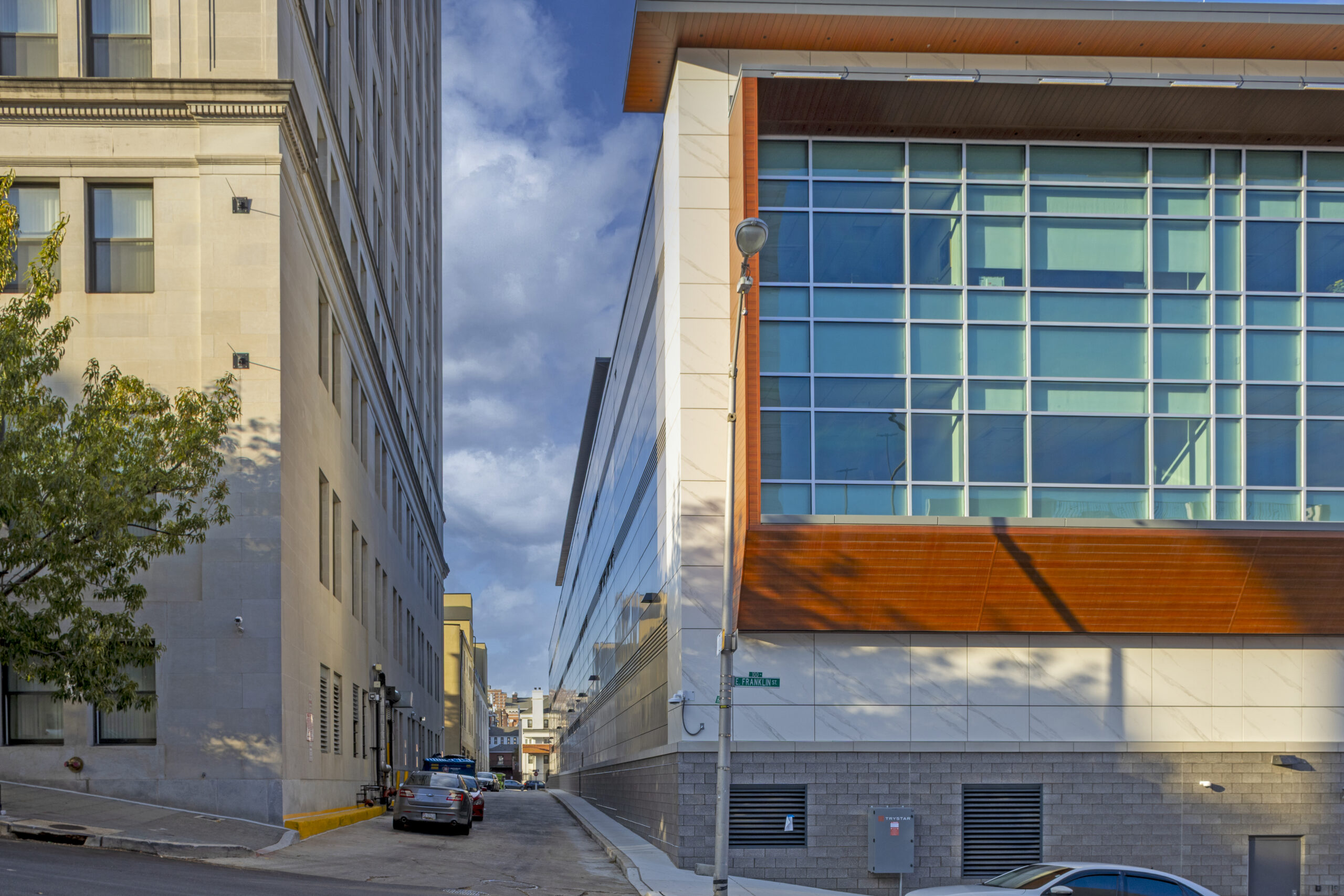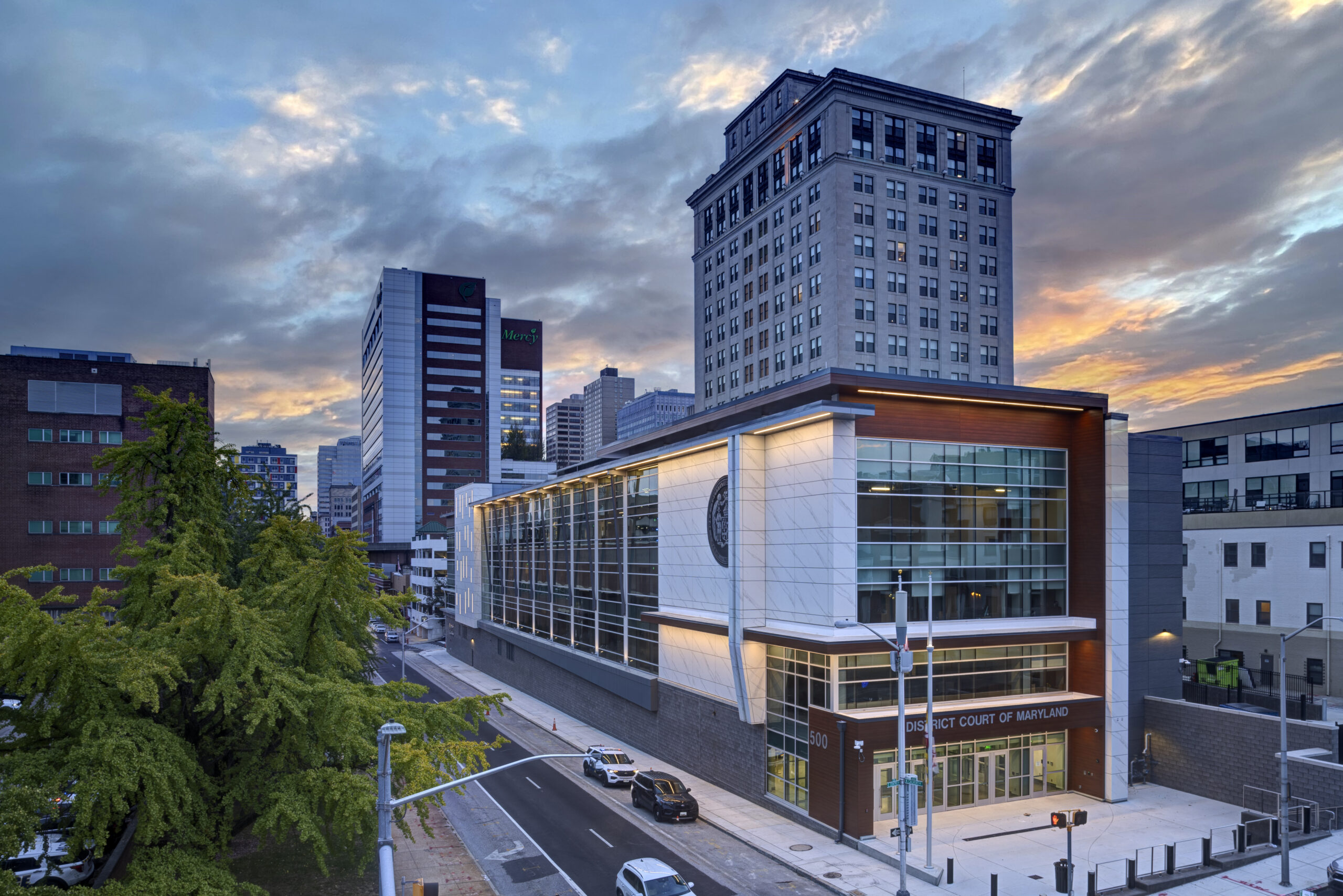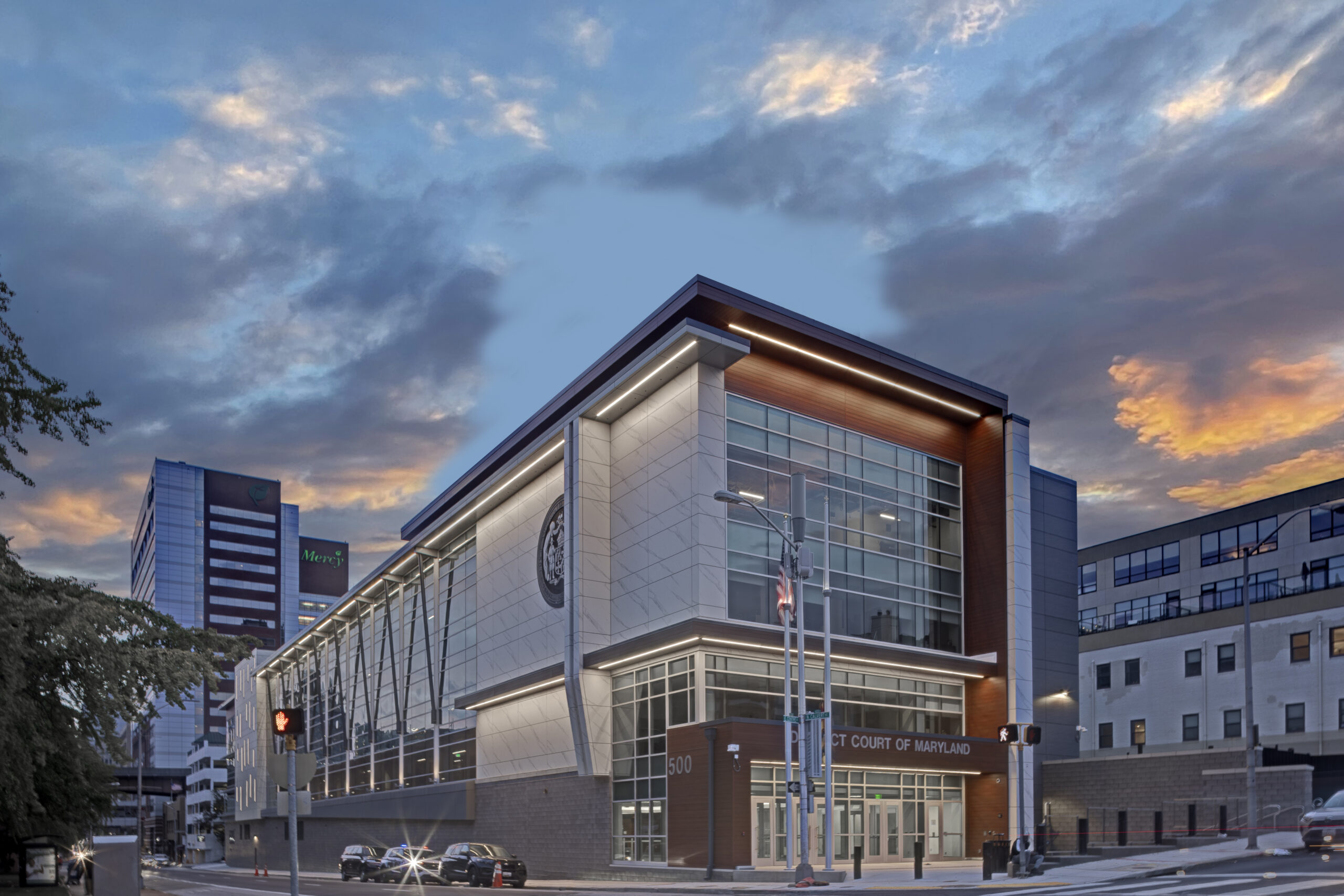 CAM Construction was hired by Maryland’s Department of General Services (“DGS”) to convert a 1960’s-era office building into the Baltimore City District Courthouse, a transformative $71 million redevelopment project for the Maryland Judiciary. This 170,000-square-foot facility exhibits a complete modernization of a functionally obsolete and largely vacant municipal building, providing the city with a state-of-the-art civic complex featuring eight modern courtrooms, four of which are dual-purpose and can hold both civil and criminal trials, advanced detention facilities, secure sallyport operations, and a two-story, partially underground parking garage.