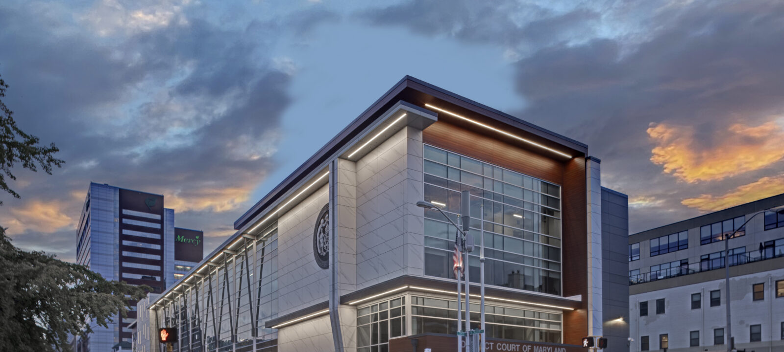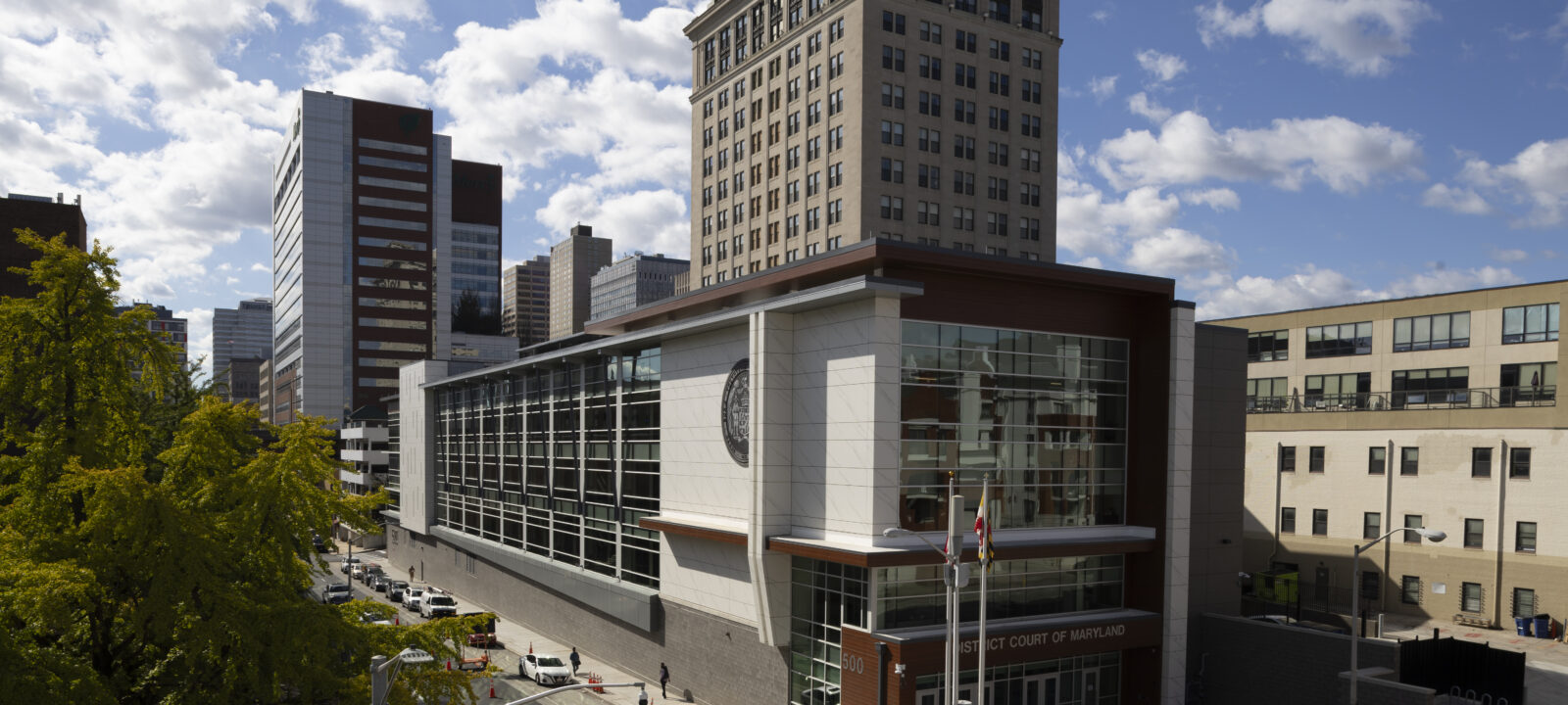 Return to PortfolioCAM Construction was hired by the Department of General Services to complete a fully comprehensive renovation of the Baltimore City District Courthouse on 500 N. Calvert Street, a transformative $68 million reconstruction project for the Maryland Department of General Services. This 170,000-square-foot facility exhibits a complete modernization of an existing downtown Baltimore courthouse and provides the city with a state-of-the-art judicial complex featuring eight modern courtrooms, four of which are dual-purpose and can serve both civil and criminal trials, advanced detention facilities, secure sallyport operations, and a two-story, partially underground parking infrastructure.