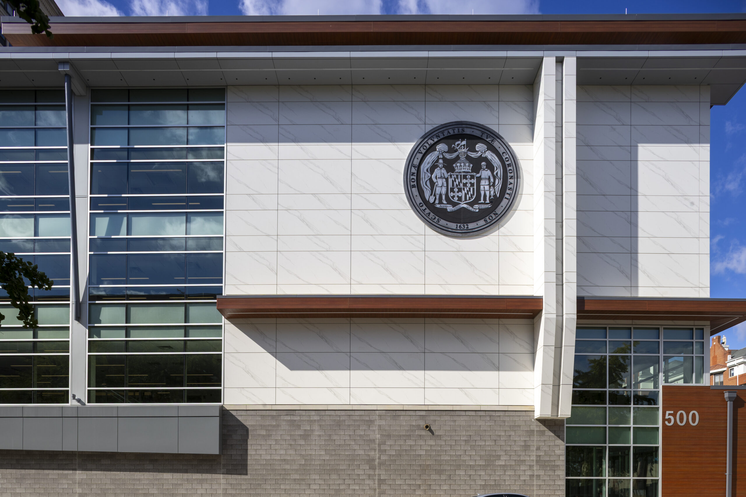 Notably, this project is the first DGS facility eligible for LEED certification. A two-fold green roof system was installed and creates a cooling environment for the roof while mitigating stormwater runoff.  The high-performance building envelope reduces heating and cooling loads through improved insulation and air sealing. LED lighting was integrated throughout the facility with occupancy sensors and daylight harvesting strategies to minimize electrical consumption while providing excellent illumination for judicial functions.
