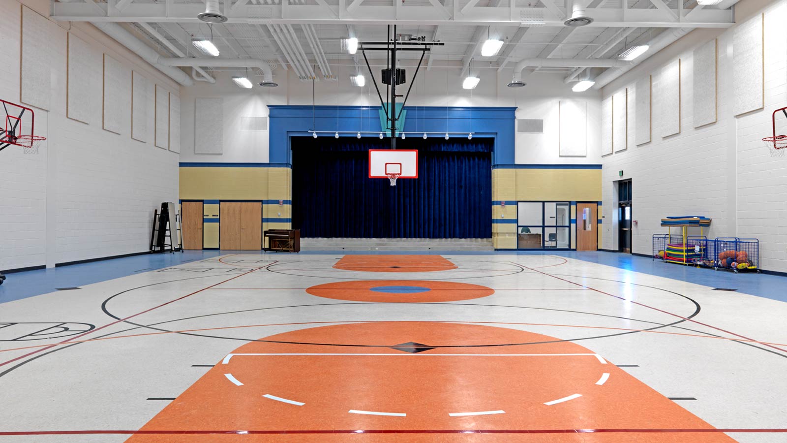 Among the many unanticipated challenges was the instance where, after the new interior masonry walls were completed, the School system realized that several additional drinking fountains were required outside the gym; necessitating cutting of the concrete floors and newly completed walls to install plumbing for these fountains.