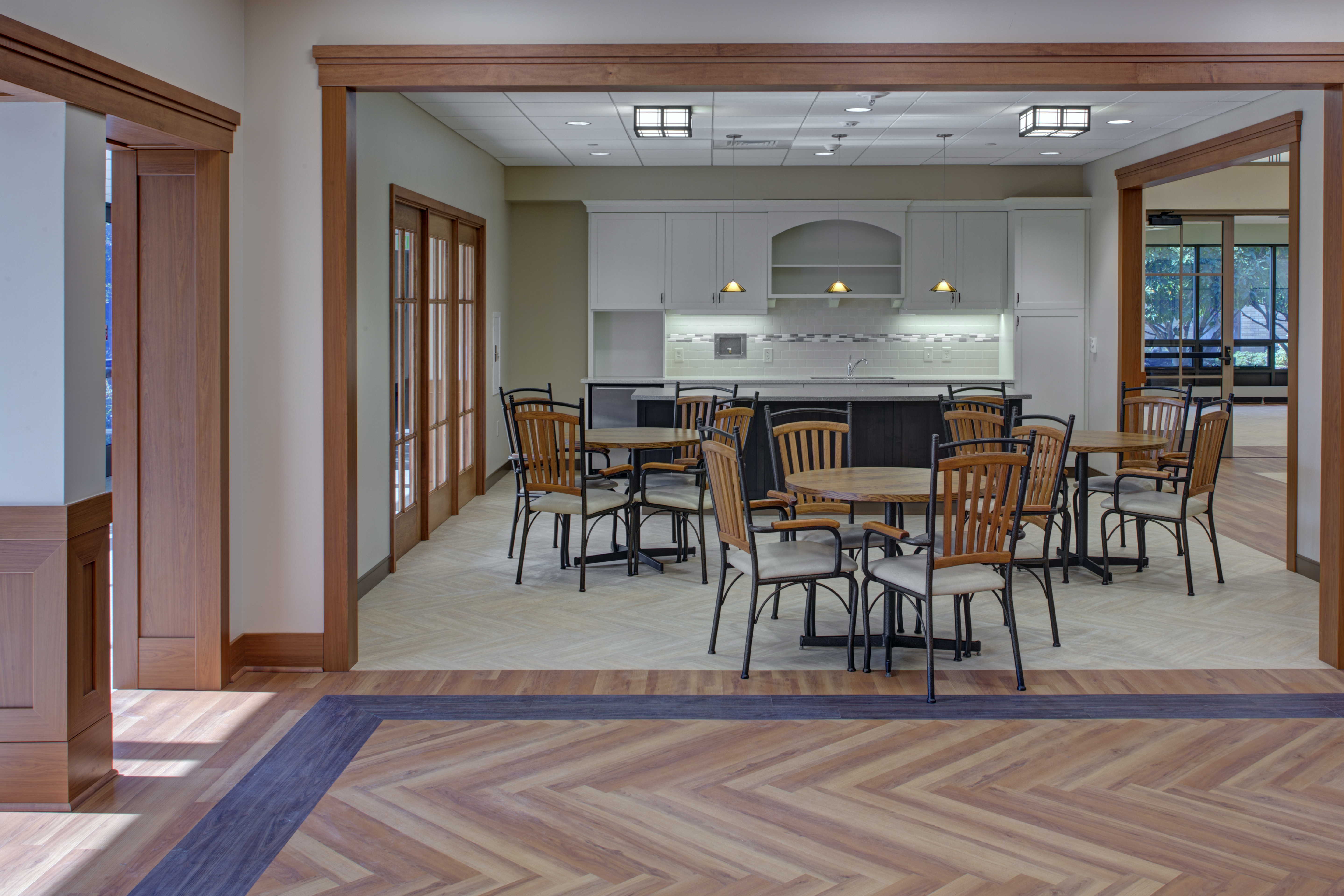 Return to PortfolioThe renovation to the “Main-Street” facilities at the Little Sister’s of the Poor – St. Martin’s Home campus required CAM to raise the existing roof structure within the middle of an occupied facility, and provide a new library, salon, community store, coffee shop, formal dining facility, and common areas. In addition, our team renovated all main corridors within the facility and completed a full mechanical and electrical system extension and upgrade.
