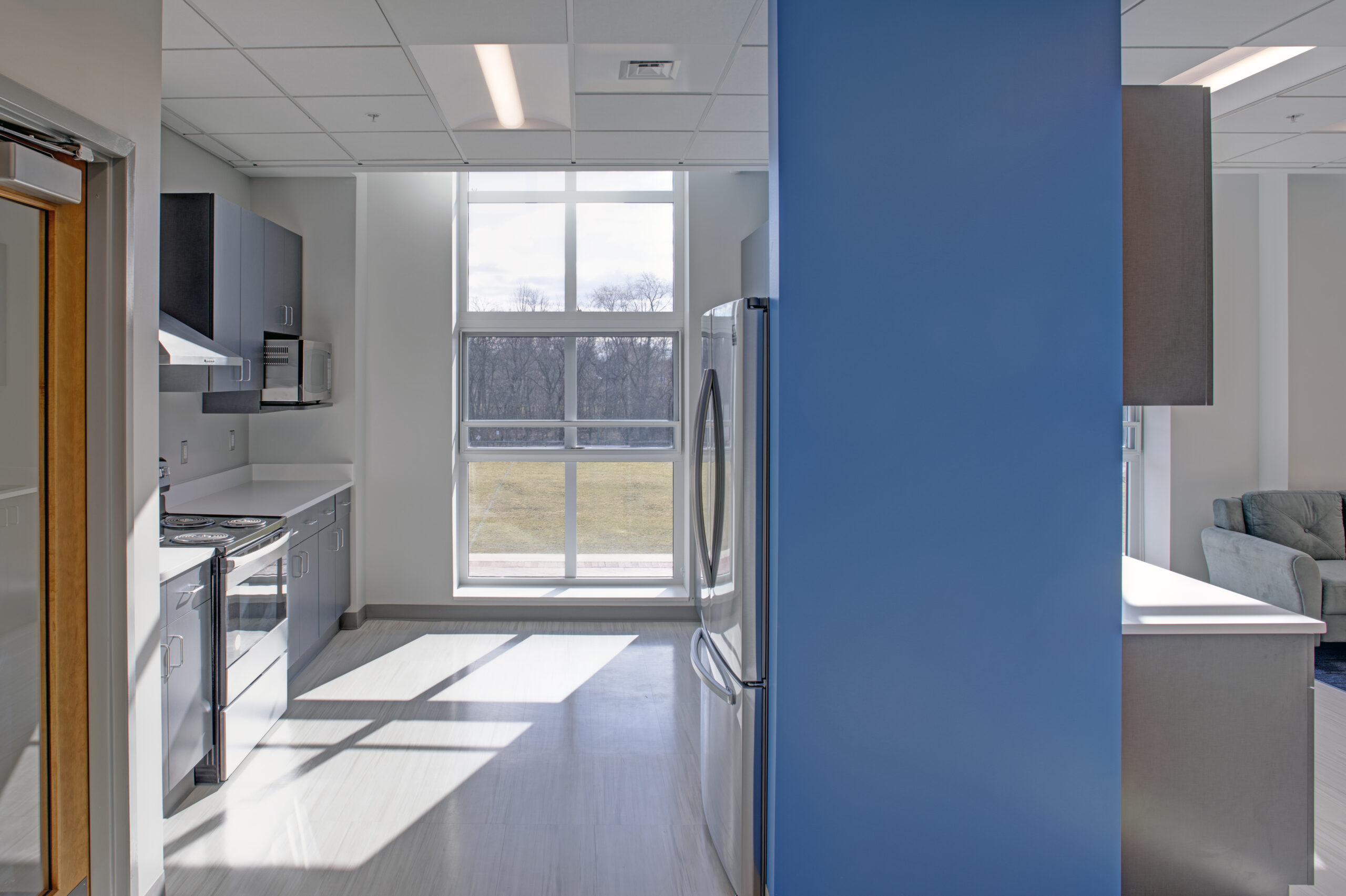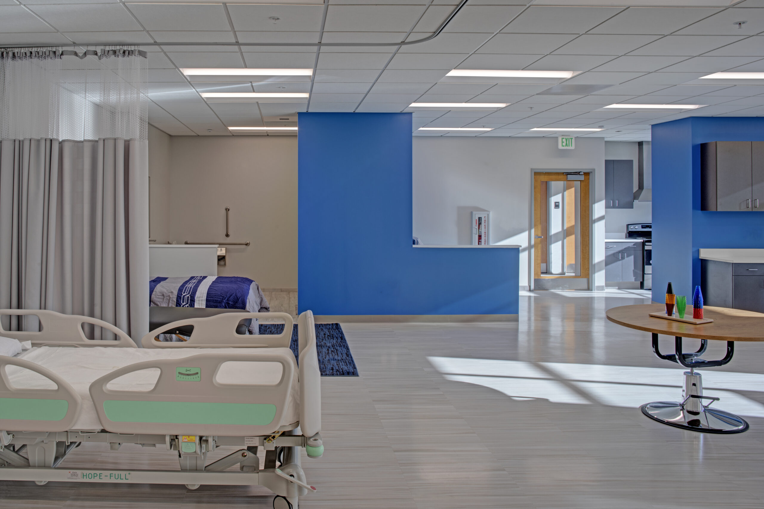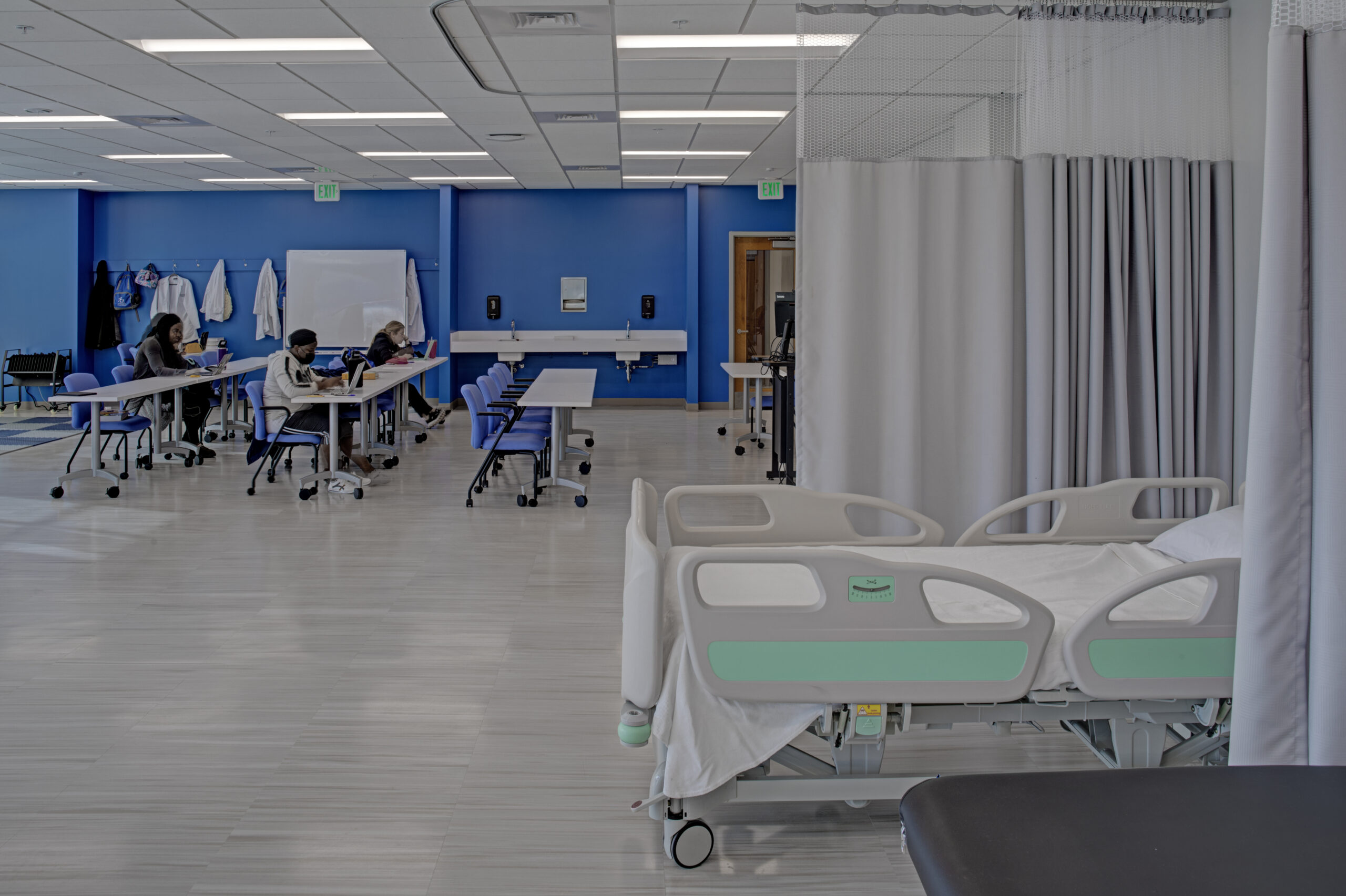 Return to PortfolioThis project consisted of the conversion of approximately 5,000 square feet of unfinished storage space into Occupational Therapy Labs, within a partially-below grade level of NDMU’s University Academic Building. This suite will be utilized as hands-on learning environment for students aspiring to enter the Home Healthcare and Physical Therapy subsectors of nursing. The goal of this program is to train young professionals who will be assisting elderly/injured patients seeking to return home after stay in a hospital or outpatient rehab center. In addition to the collaborative teaching and admin areas, CAM’s fit-out included a new handicap-accessible restroom, laundry room, medical beds, and kitchen, to simulate the environment they would encounter in a typical assisted living facility or independent residence.