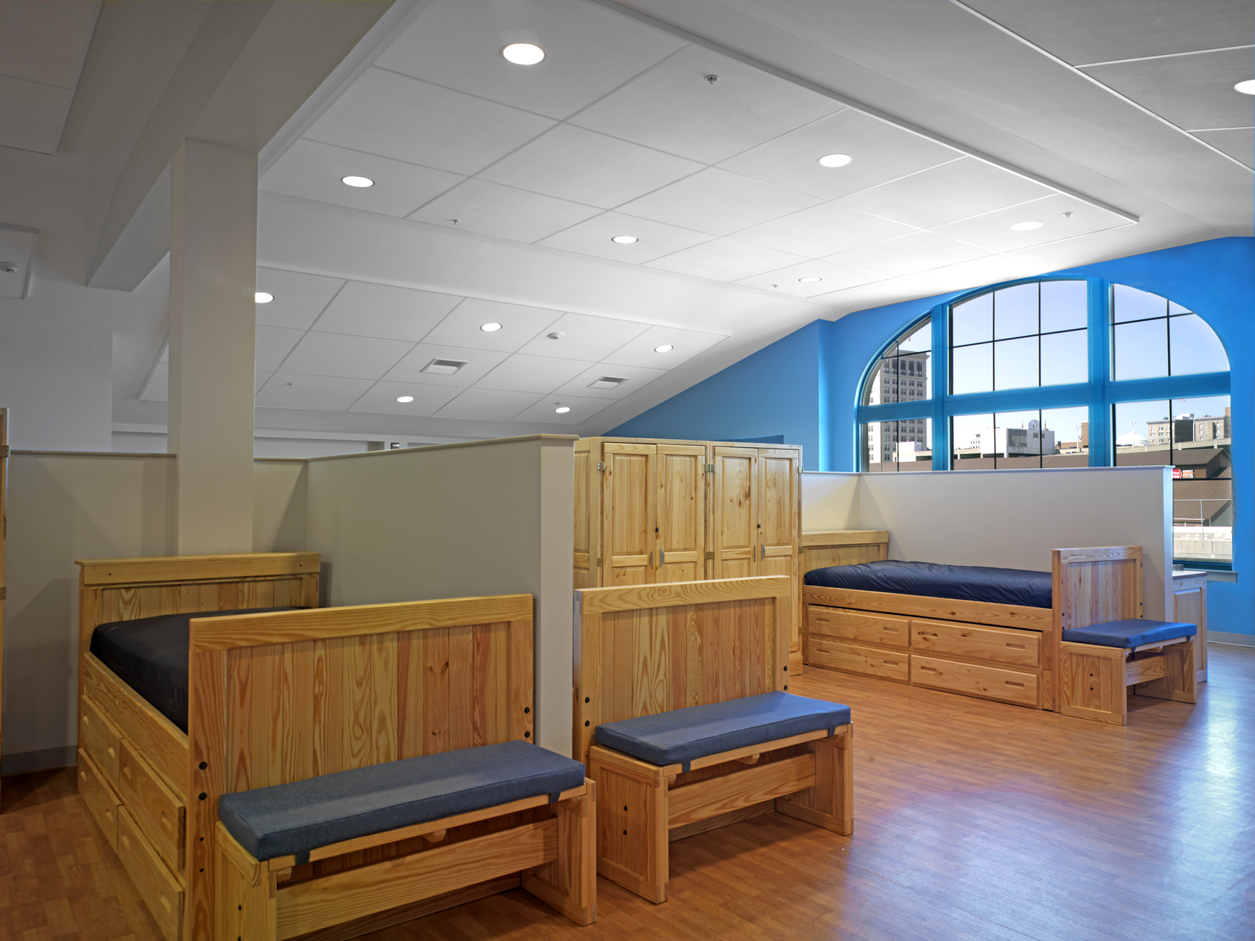 The Our Daily Bread soup kitchen annually serves nearly 250,000 hot meals to an average of 683 guests. Opened in 1981, and now relocated to the Fallsway corridor, Our Daily Bread is able to provide food for more guests than ever before. The Christopher Place Employment Academy, which occupies the third floor of the new structure, provides an intense 18-month residential job-readiness, education, job placement, addiction recovery program, and follow-up services. Complementing the Christopher Place program is the St. Jude’s Employment Center, which affords walk-in aid to those seeking job readiness skills and employment referrals as unskilled or low-skilled workers.